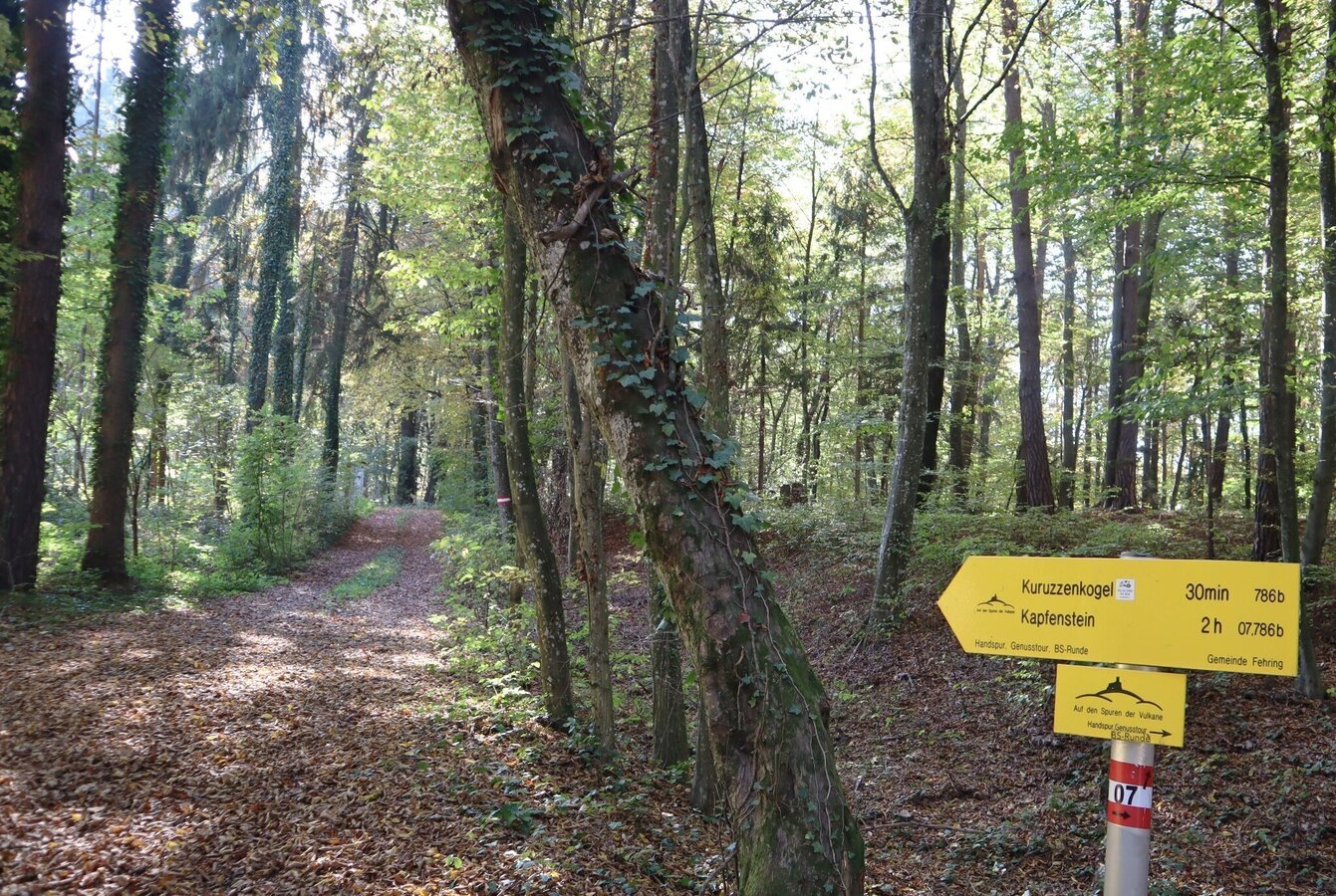 In Unterlamm the region Vulkanland spreads the five fingers of its left hand the furthest to the East and reaches the thermal bath Loipersdorf. Starting out at its main entrance, we walk towards Hotel Stoiser, cross the round-about and after a few meters see several signposts for hiking trails. We take care to check the signposts for Handspur and hike through the forest. From there we reach open, hilly landscape that we follow to the viewing platform “looking to our neighbors”. The panorama offers great views of the village Unterlamm, but also of the surrounding hills even far across the borders. Through the village we reach the Celtic tree Calendar, which is one of the stops along the Erlebensweg der Sinne, who accompanied us till here. Paths rich in variety lead us via Nesselbachberg and Mauserberg towards Hohenbrugg. We pass abandoned meanders of the river Raab. A Tschartake reminds us of the region’s defensive history. Passing Castle Hohenbrugg we ascend Fröhlichberg and, further along, Weinberg. We cross the river Raab valley and reach the city of Fehring. The Tabor, the open-spaced main square as well as the parish church are well-worth a visit. The latter is especially known for its Madonna with a lopsided smile, a flaw carved in while attempting modernization. Via the mythical quarry we again walk uphill. The Kuruzzenkogel, historically a strong elbow against intruders from the East, welcomes us with its Kellergassl alley and some picturesque traditional wine cellars. From here we enjoy an easy hike on elevated grounds until we reach the fieriest place of Vulkanland: Kapenfsteiner Kogel. The trail descends slightly through the forest, crosses the street and follows along the valley straight towards Gleichenberger Kogel. After the Pfeiferkapelle, a chapel that is designed in a rather unusual way, the path still slopes downwards, through elderberry orchards and a thick little forest until it rises again to the trass quarry with its colorful looks. Here, the "Handspur" meets the "Rückgrat", the spine of the trails of the volcanoes. We follow along, passing the hills Bschaidkogel and Mühlsteinbruch, and then downwards right into the heart of the village Bad Gleichenberg. The unique trees of the village’s park hide the secret Rindenkapelle, a chapel made from bark, and guide us to a former mug factory. Here, we say goodbye to the "Rückgrat" and follow the "Handspur" towards the West. We ascend Rudolfskogel with its amazing view over Bad Gleichenberg and the Sulzbach’s valley. A little further we reachTrautmannsdorf. Through the diverse landscape with airy meadows and refreshing forests we reach the Poppendorf. The course of a little stream shows the way through the village until we turn towards Castle Poppendorf. We meet the Kaskögerlweg, which is named after a little hill that is also the westernmost volcanoe of the region. Via the Schlossmoar, a very activating place that strengthens the body’s immune system mostly via the Thymus gland (behind the breast bone), the signs lead us right into the center of Gnas. We hike through the market town, along the stream Gnasbach towards the village Obergnas. The path heads through the forest to Raffelegg and to the top of the hill Kochberg. A fantastic lookout point welcomes us. Here, it is easy to connect even further with the surrounding landscape. This connection is also the main element of the 5-Elemente-path’s (5 elements) stop focusing on the earth. From here it is an easy walk on the hilltops. We cross the street and hike without noteworthy ascends, but still with a lot of beautiful views to Lichtenegg. After crossing the gouge dug by the stream Ottersbach, its spring is located nearby, we reach a street, where the Handspur meets the Grabenlandtrail, a long-distance hike from North to South. At first, we follow both trails towards St. Stefan, but only a short while later we stay on the Handspur and keep a bit to the left in order to get out of the forest at the chapel Marienkapelle. Here, the view opens over the valley and offers a welcoming glimpse of the market town St. Stefan and the stream Saßbach. Through a vineyard we descend the hill and reach the center of St. Stefan im Rosental in less than half an hour. We are happy to have reached our destination!