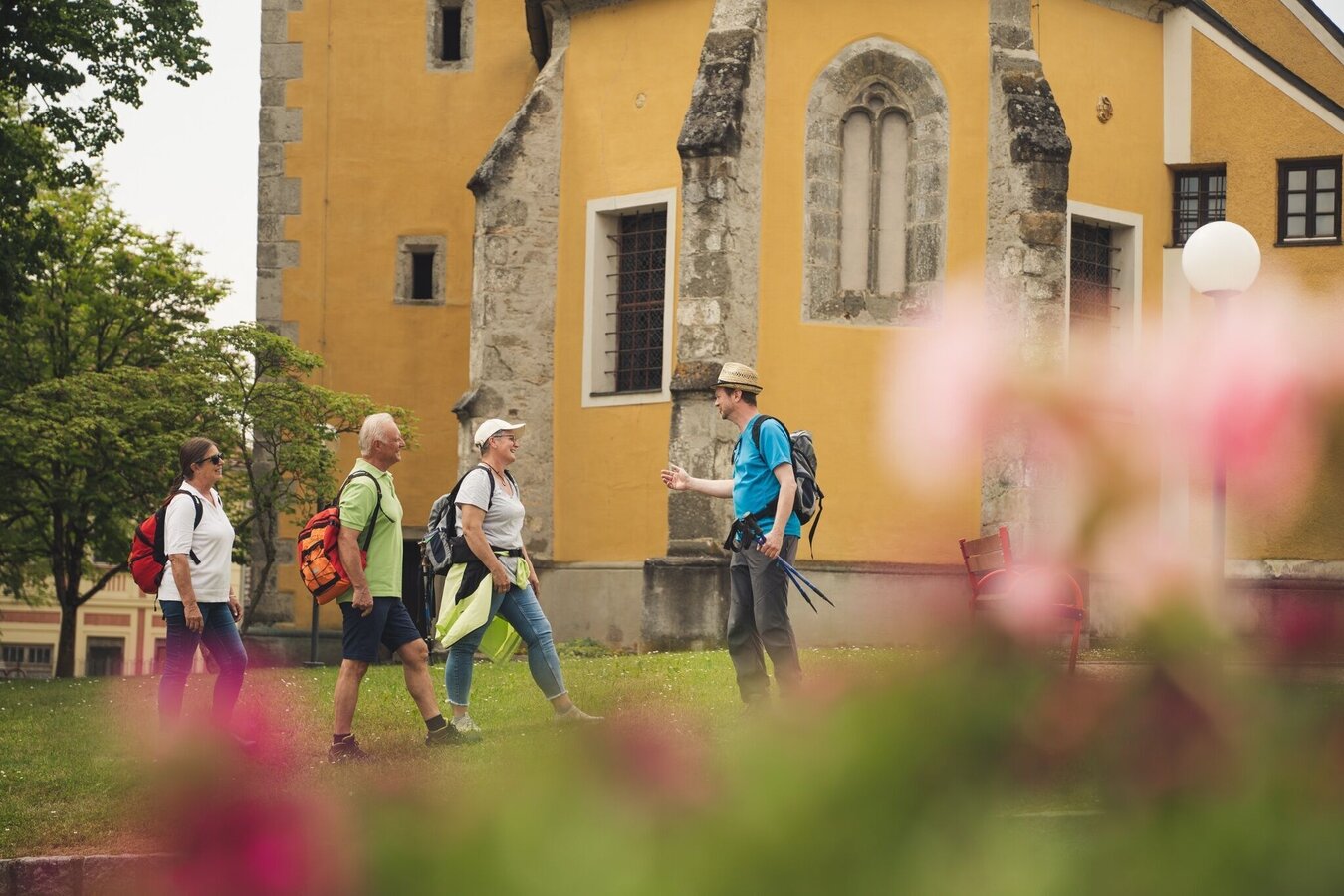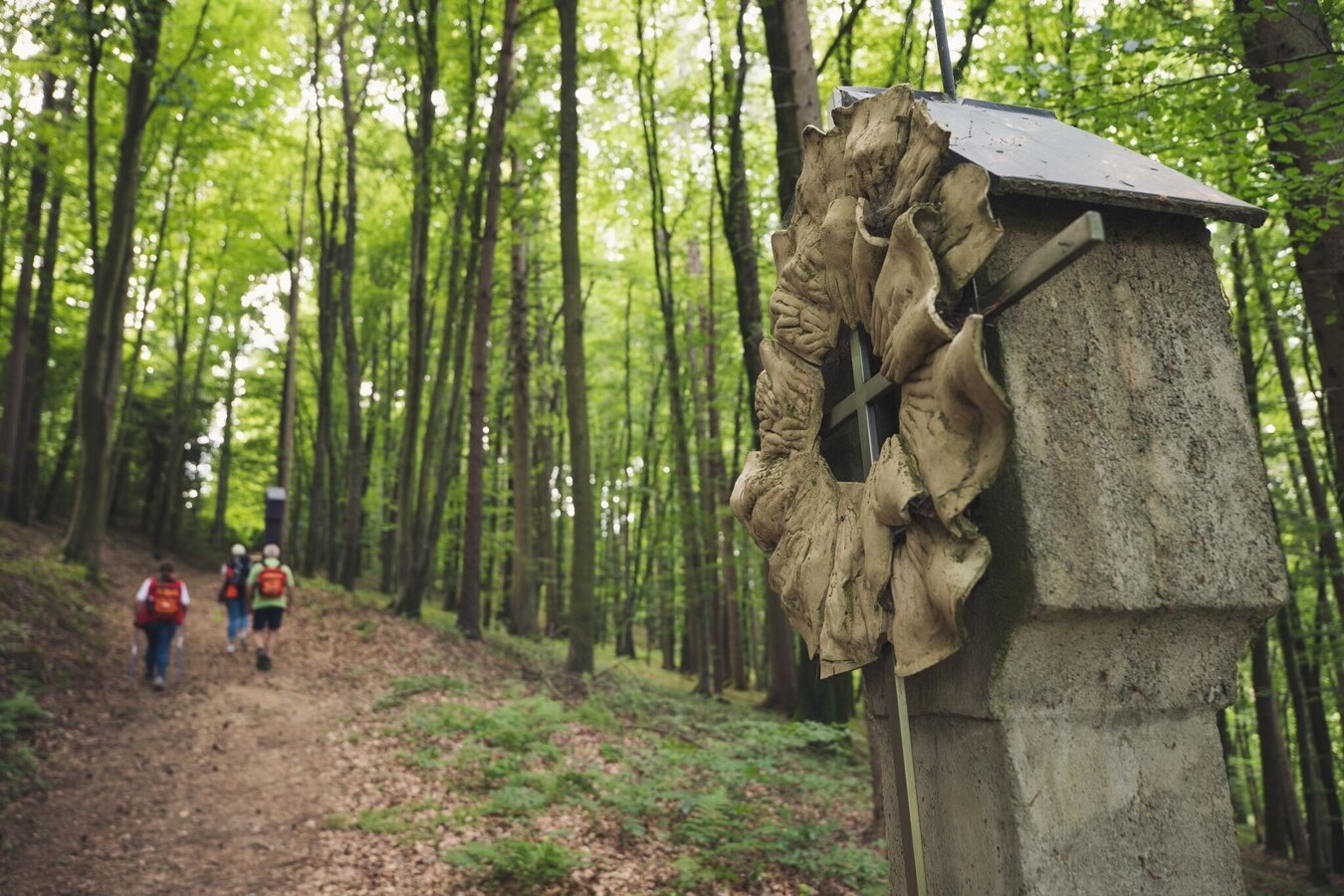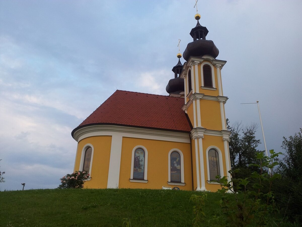 From the parish church of Kirchberg, the pilgrimage crosses the Raab valley, a slight ascent leads to the Poitschen, along the heights the path leads to the church of Eichkögl, where the pilgrimage path to Mariazell also begins. On the further pilgrimage on foot, the hiker encounters many wayside shrines, wayside crosses and chapels. They have interesting and exciting stories to tell, such as the Ulrichsquelle spring and the leaning church tower of Markt Hartmannsdorf. Having arrived at the Höherberg, Breitenfeld reveals itself as the next destination. High spirits, fruit brandies to fortify you at Gesslberg and on to Hatzendorf. Here sculptures direct your gaze and thoughts to Glücksesel and the Weltengarten. On the Setzberg, the sky is within reach and the destination, the church of Unterlamm, is in sight. Here the spiritual roof with the basalt arch at the grotto has already manifested itself. From Unterlamm, follow the marked hand track to the train station in Hohenbrugg, from where a return trip to the train station in Studenzen can be planned.