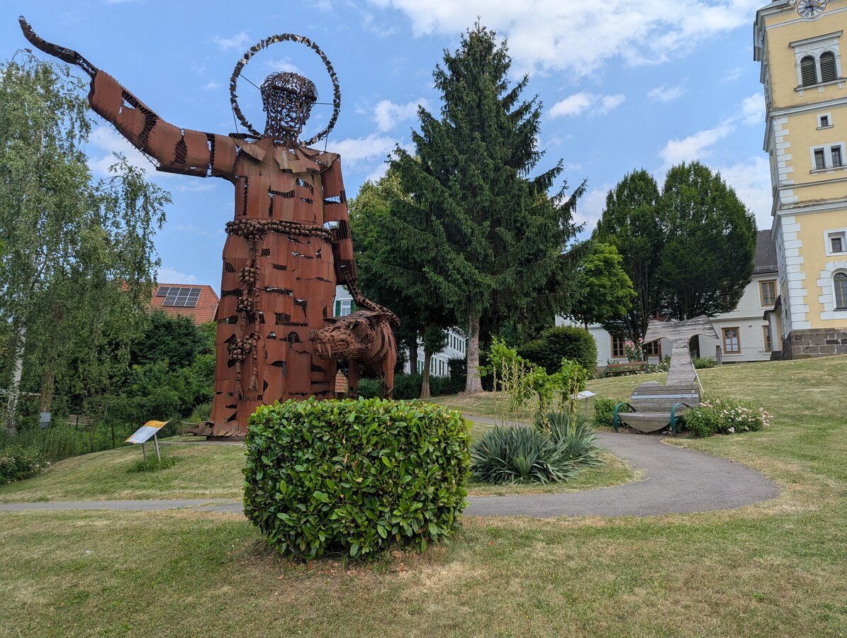 The Canticle of the Sun path is dedicated to the prayer of the same name by St. Francis of Assisi. The 9 meter high rusty statue of St. Francis with the wolf, created in 2006 by the Bolivian Fernando Crespo, cannot be overlooked. Artists from Tieschen have designed stations for the individual stanzas of the Canticle of the Sun, which encourage reflection and invite deeper encounters with the elements. In the church itself, the painting of St. Francis with Our Lady, painted by Rotky, is particularly noteworthy.