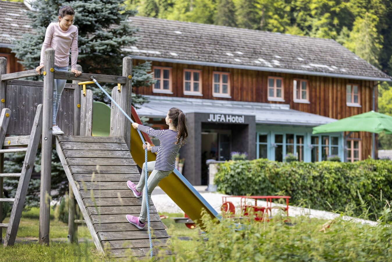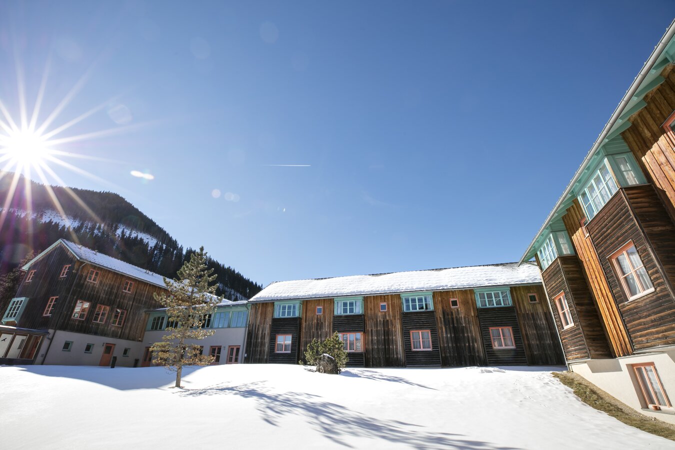 The JUFA Hotel Eisenerz***, modernized in 2020, awaits you idyllically nestled in the picturesque alpine landscape of the Eisenerzer Ramsau with a view of the imposing backdrop of the Erzberg. Five comfortably furnished houses, surrounded by wide meadows with modern rooms, some with two separate bedrooms, invite you to relax and dream. The new sports hall offers ideal conditions for letting off steam and practicing a wide variety of indoor sports.