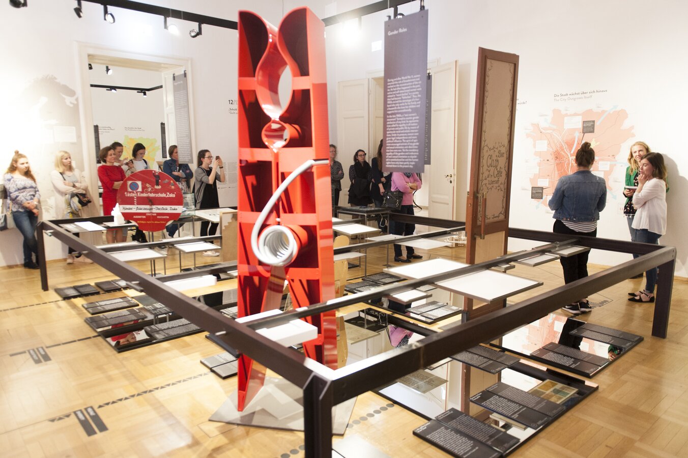The particularly detailed "large Schlossberg model" shows the condition of the mountain before the demolition of the fortress and before the park creation. The historical model is juxtaposed with utopian projects, such as those to build a festival hall or an underground car park on or in the city hill.