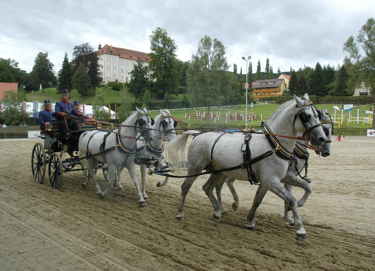 In the gently rolling hills of western Styria lies the picturesque village of Piber, the birthplace of the famous Lipizzaner stallions of the Spanish Riding School since 1920. In Piber, it is easy to understand why the Lipizzaners were favorites of the Habsburgs: They are extremely intelligent, lively and people-oriented. As a UNESCO national intangible cultural heritage site, the Lipizzaner stud farm in Piber also safeguards the centuries-old knowledge of breeding and rearing Lipizzaners. Every year, around 40 foals are born and spend their childhood and adolescent days at the Lipizzaner stud, on its outlying farms and on the surrounding Alpine pastures for their summer retreat. The stables, paddocks, idyllic castle, museum with interactive stations on the breeding and rearing of Lipizzaners in Piber, the coach house with its historic carriages, the café-restaurant and the event arena make this a wonderful excursion destination for visitors. Experience the world-famous Lipizzaners up close on guided tours of the stud farm, carriage rides, guided tours of the alpine pastures or at one of the events in the large arena with demonstrations by the riding and driving department of the Lipizzaner stud farm in Piber or book a VIP tour for your own individual experience at the stud farm.